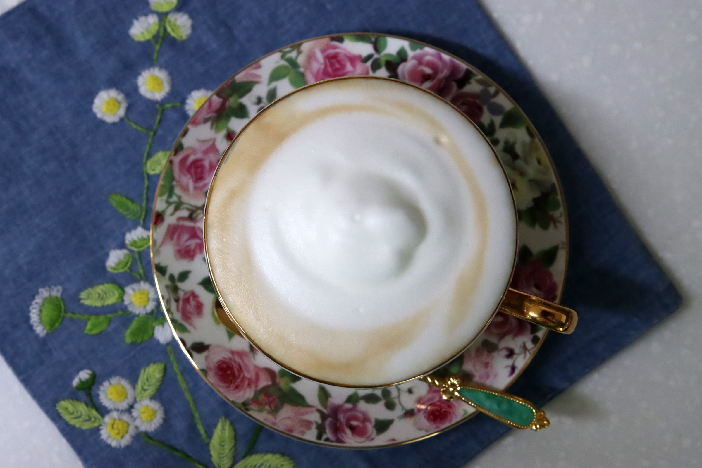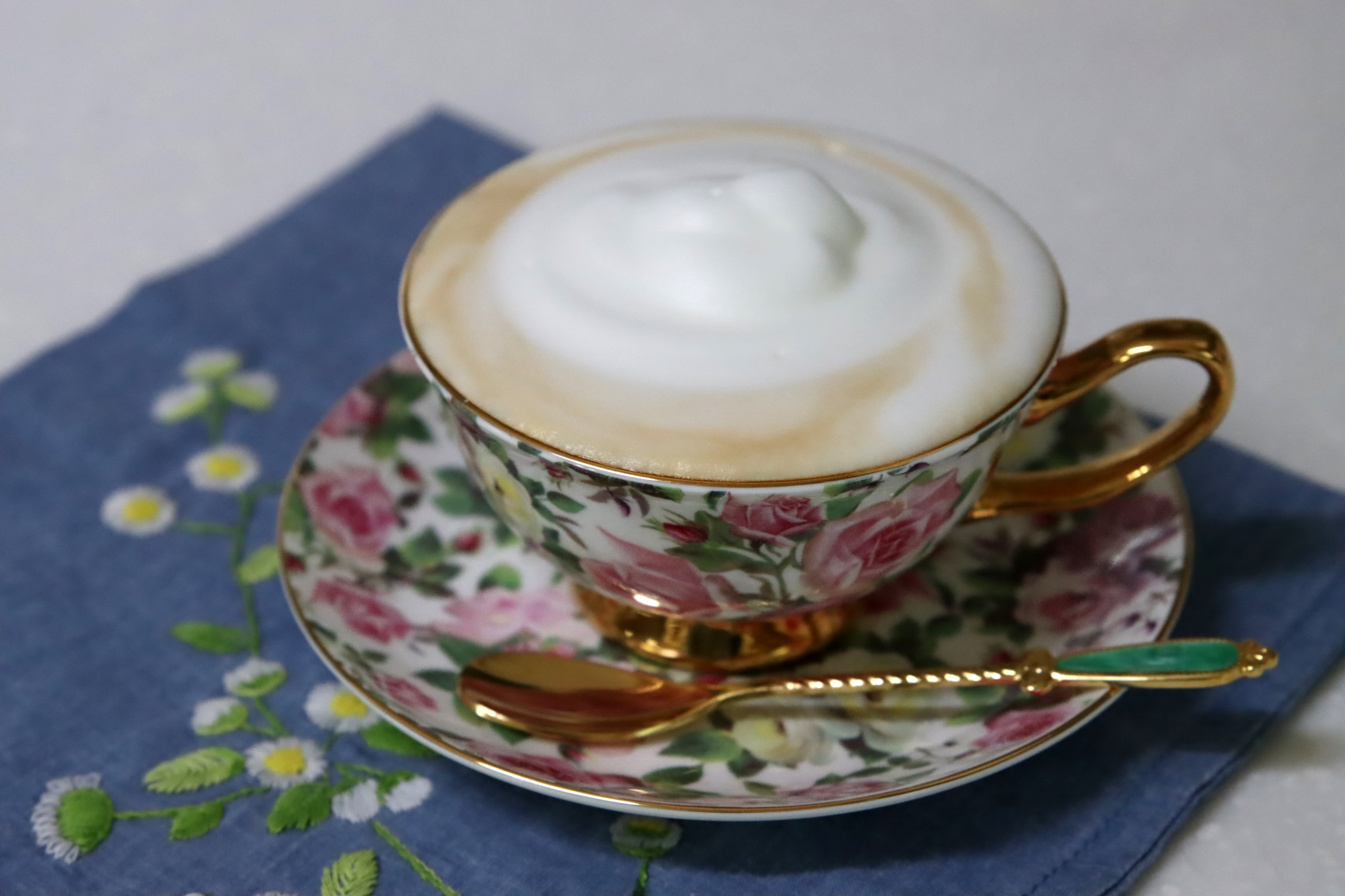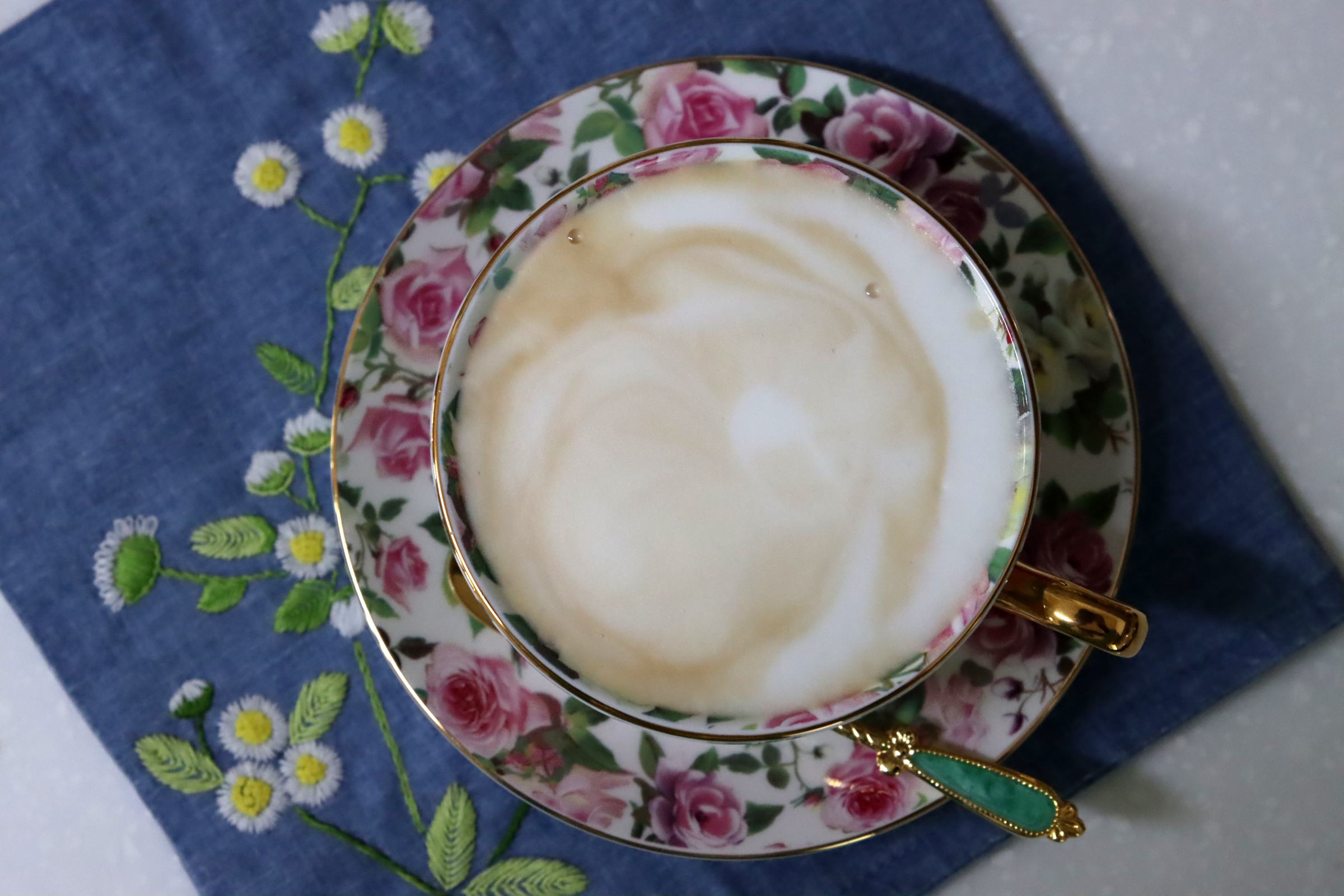 찻잔도 예쁘고, 우유 거품도 좋고,