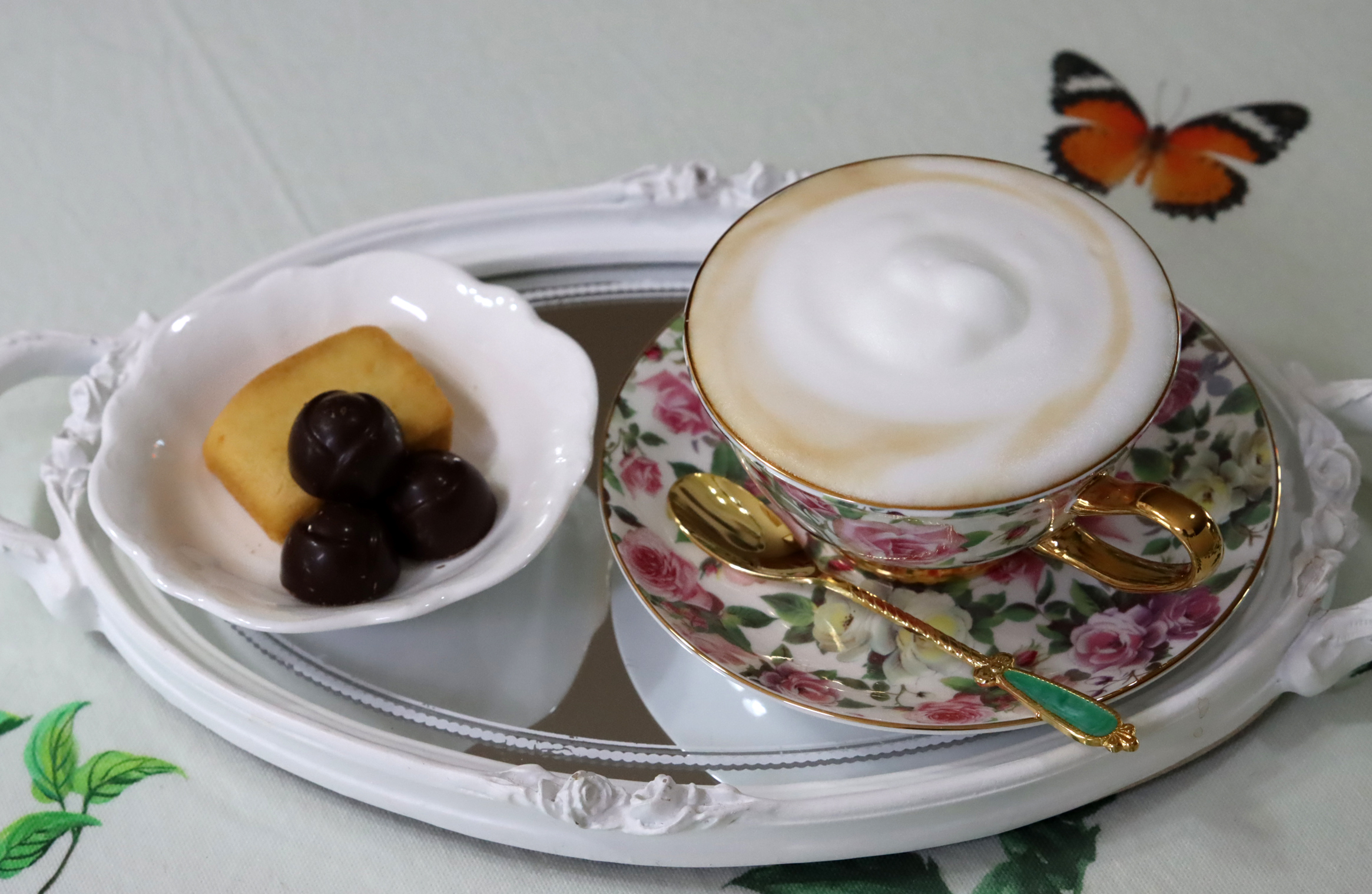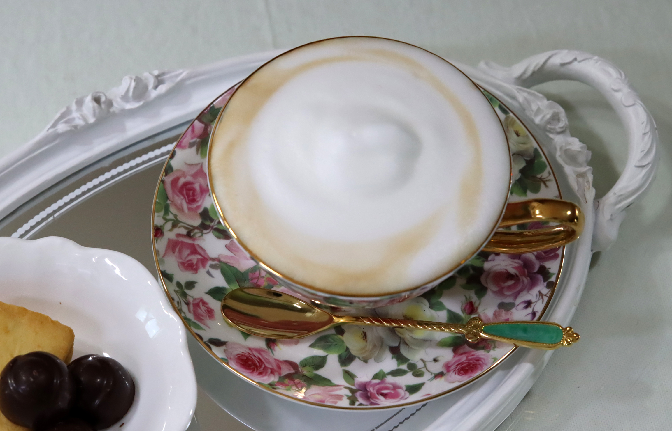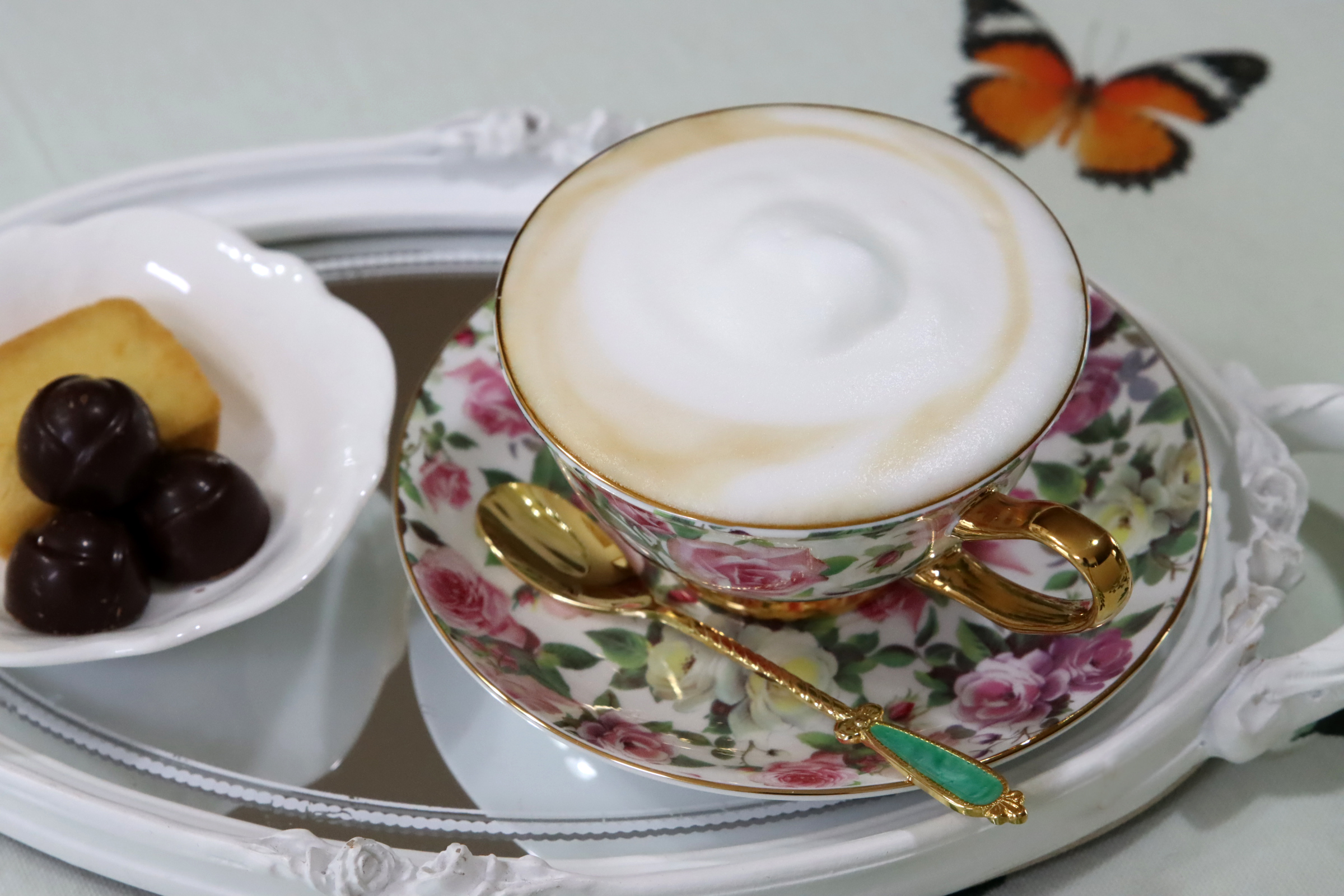 찻잔도 예쁘고, 우유 거품도 좋고,