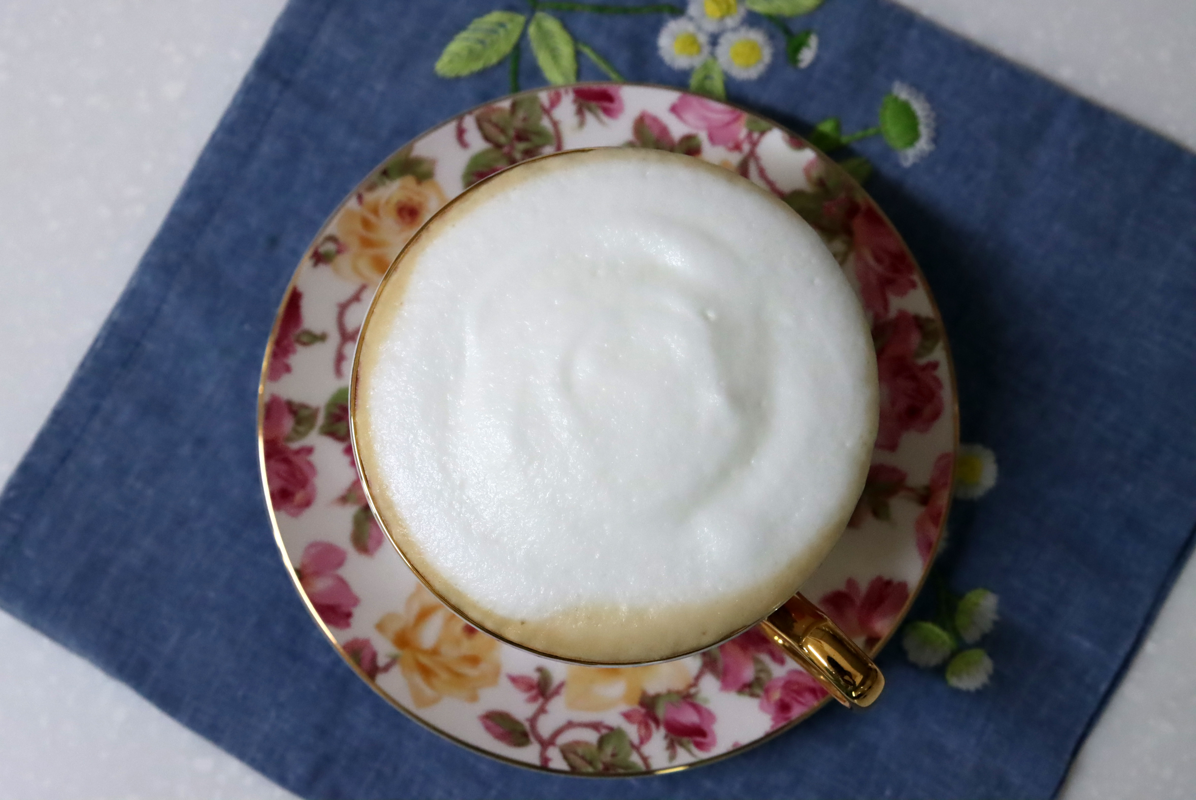 한동안 사진을 찍어도 사라지지 않는 우유 거품.