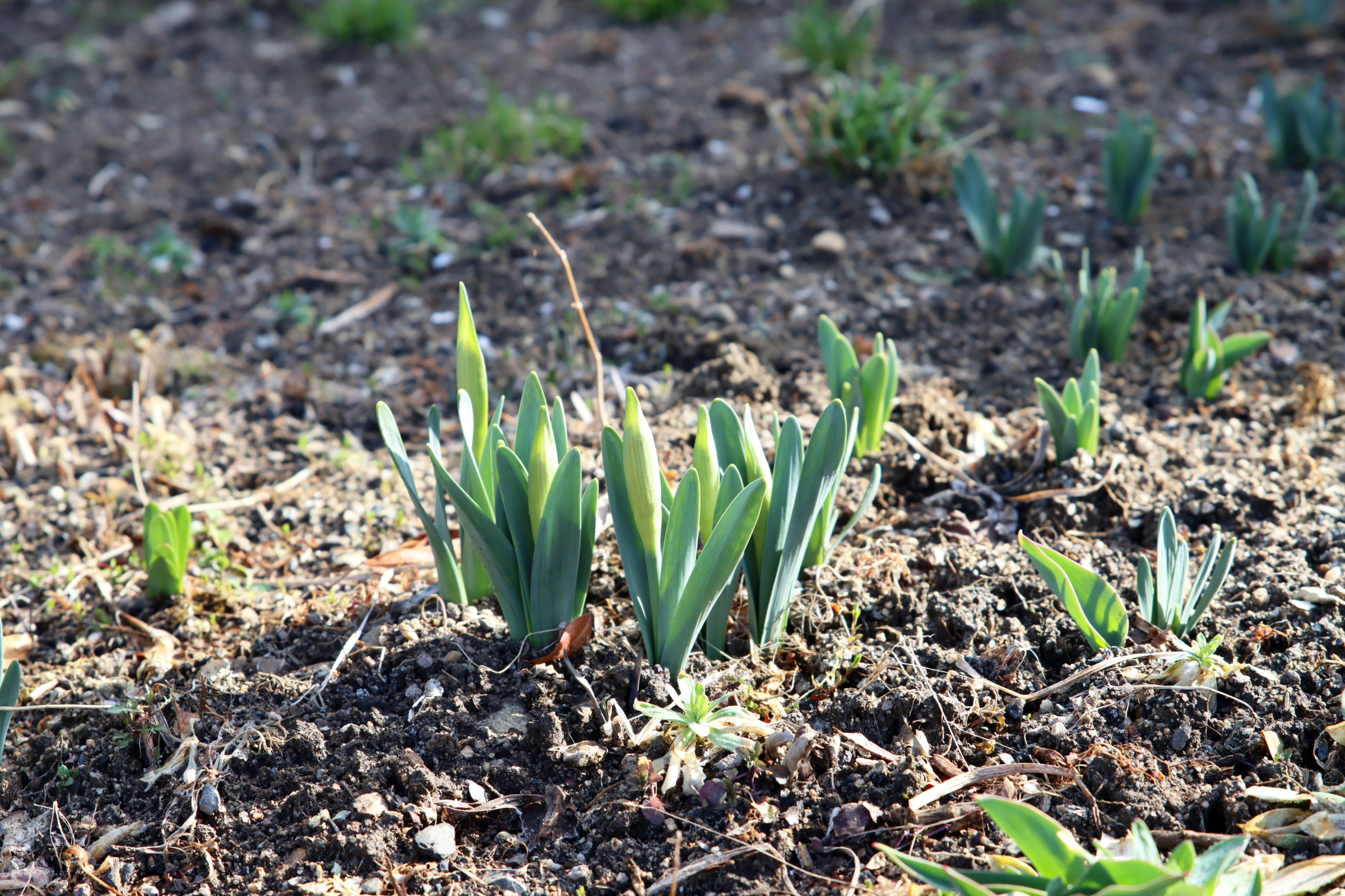 수선화싹 중간중간에 U자 모양의 이파리가 튤립이다.