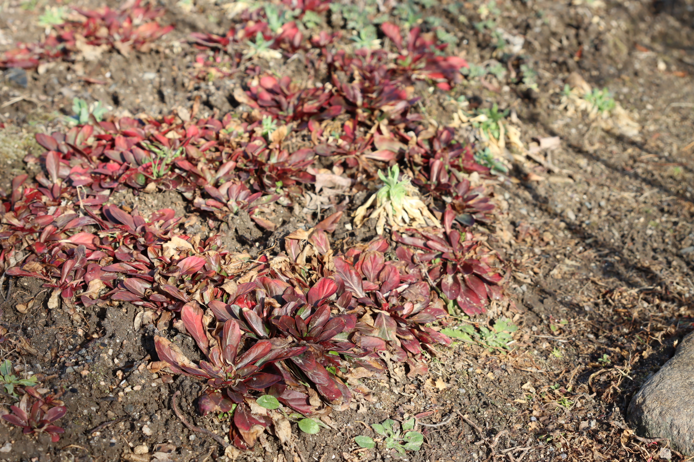 엄마께서 곧 배추꽃이 필 모양새라 마당 꽃밭에 옮겨 심으셨단다.