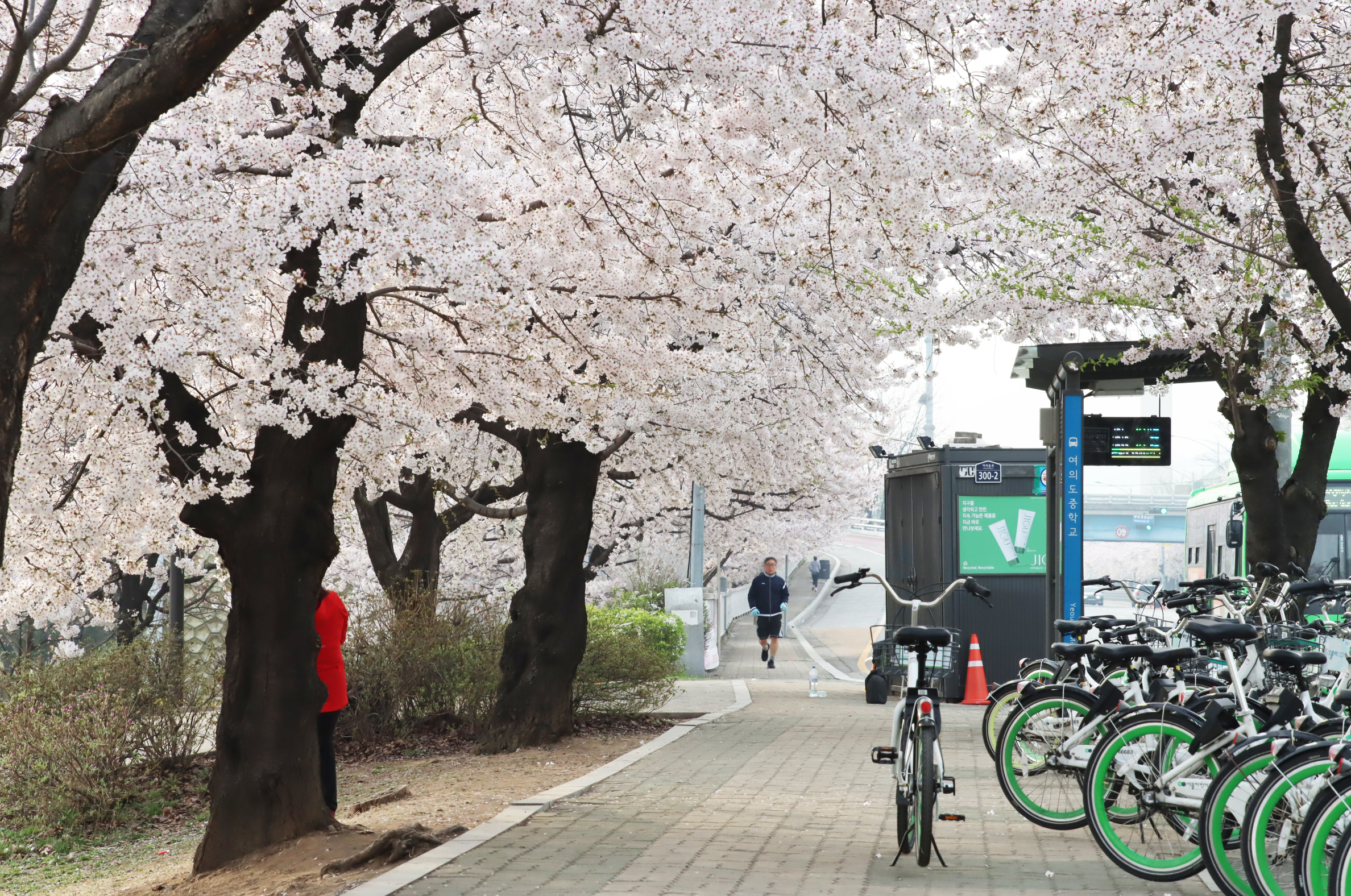 여의나루역 2번 출구에서 나와 조금만 걸어가면 이렇게 멋진 벚나무 길이 나온다.