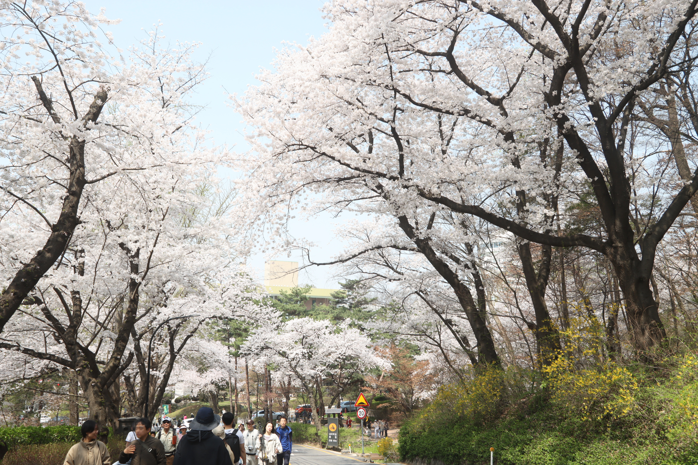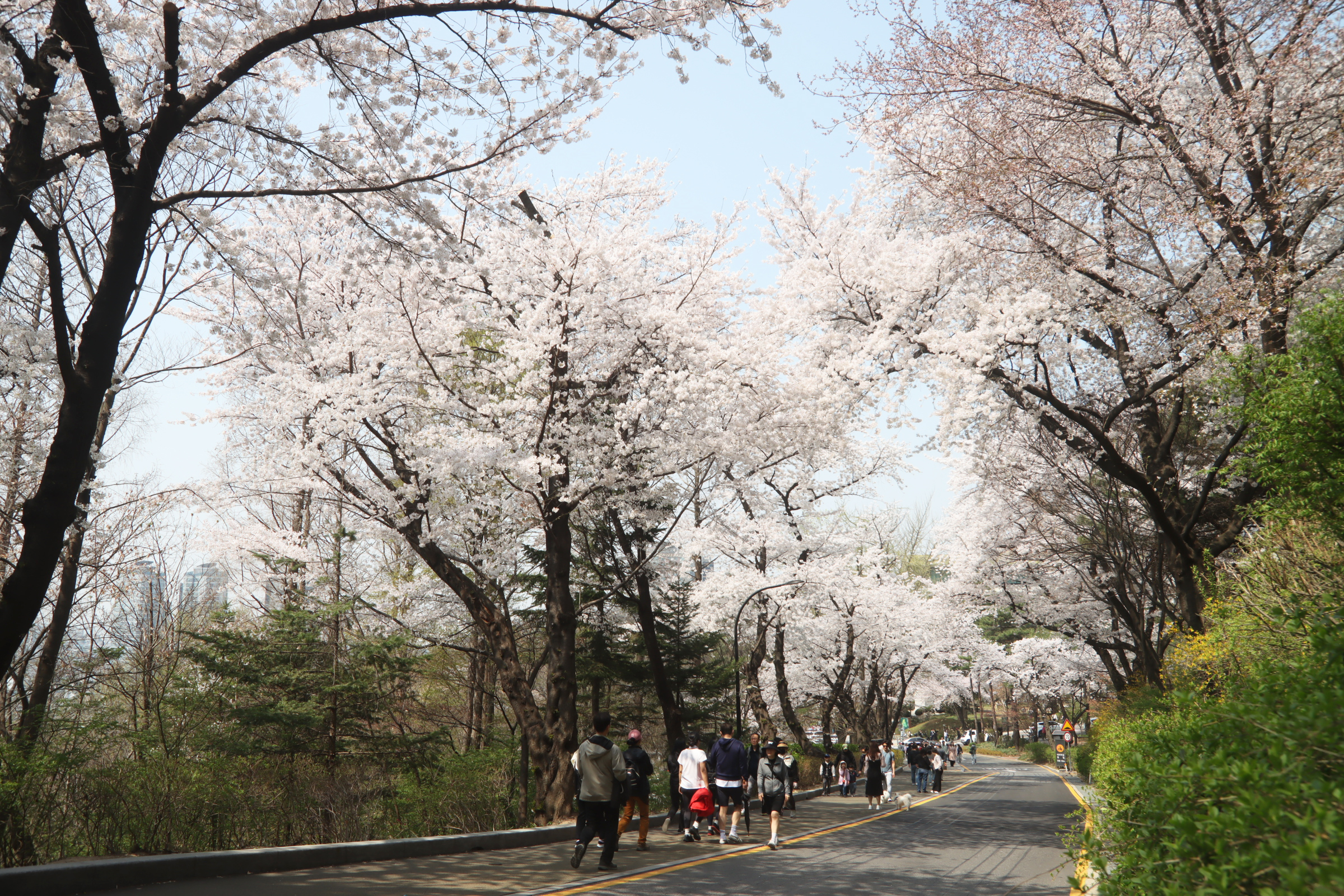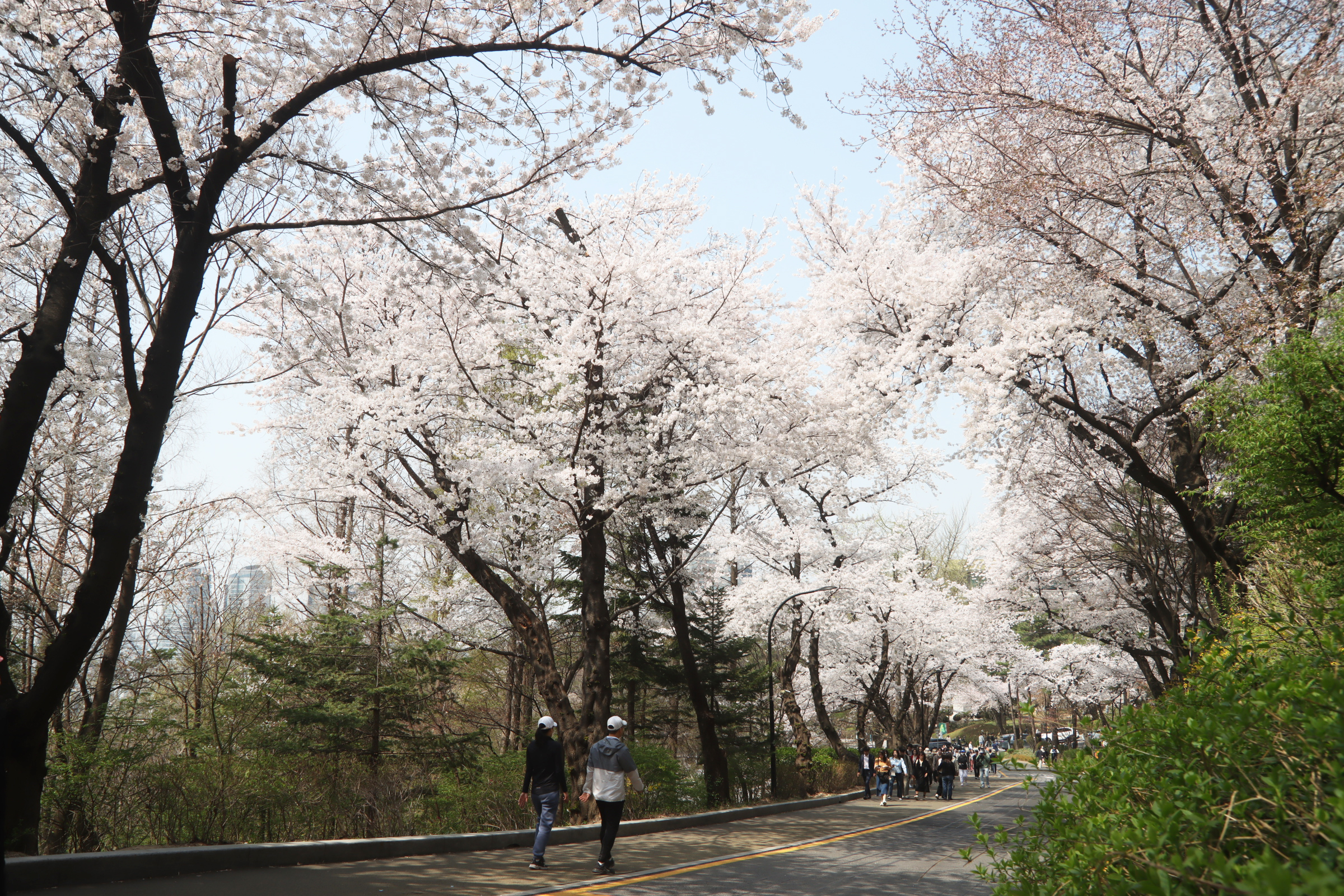 남산의 벚꽃은 정확히 절정이었다.