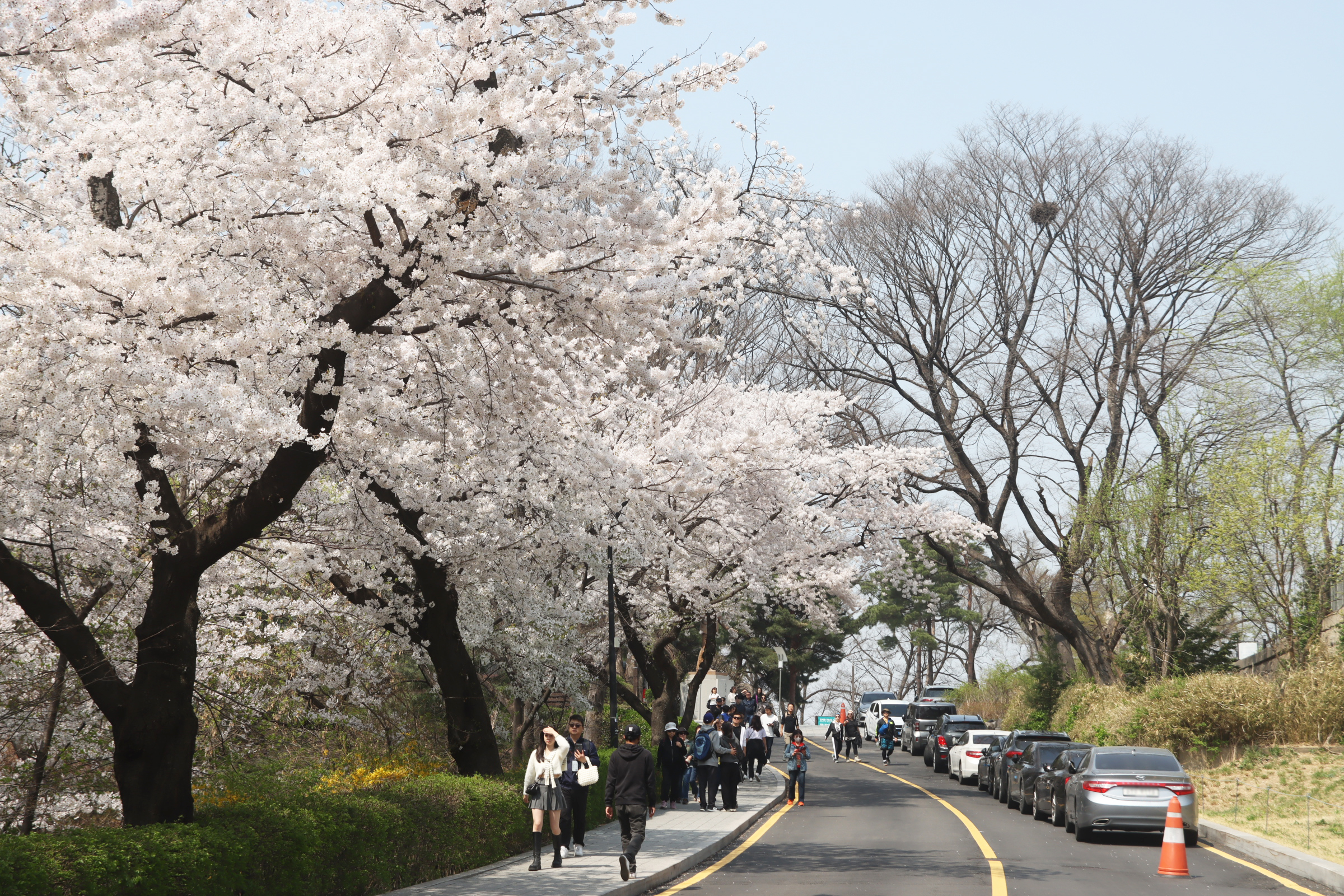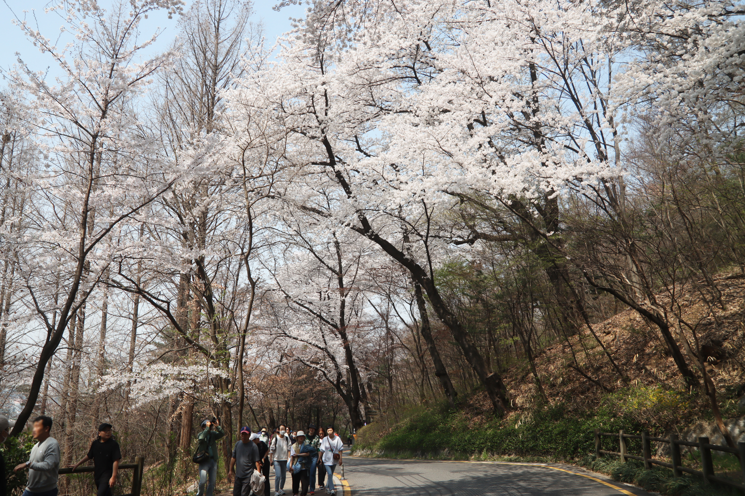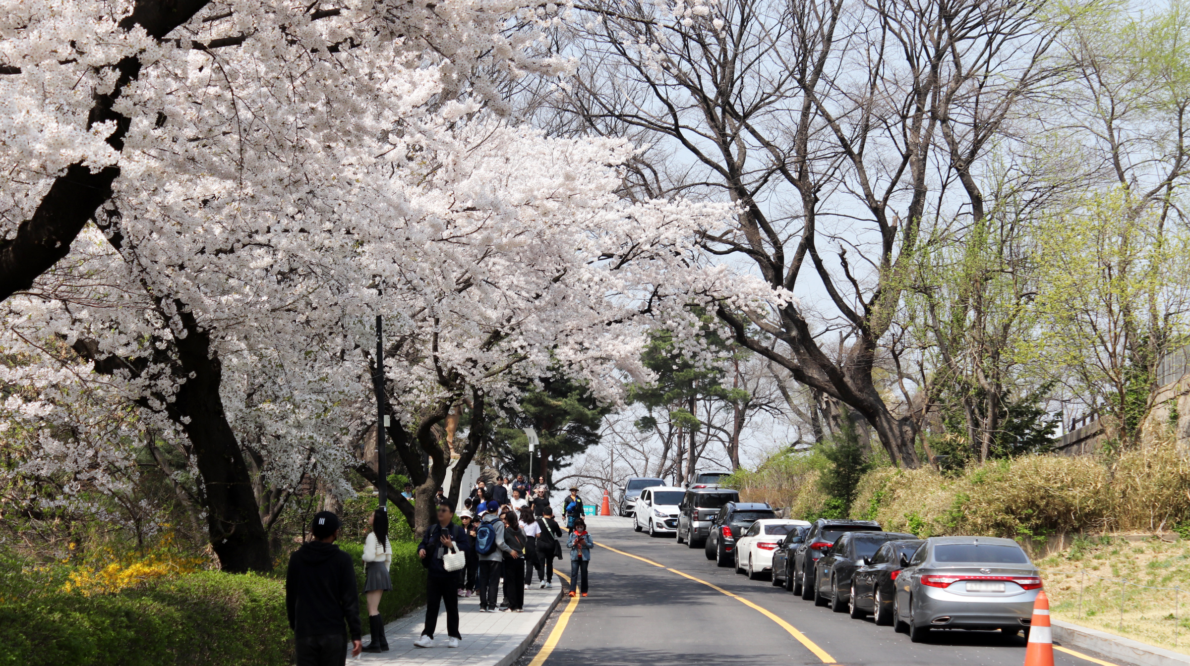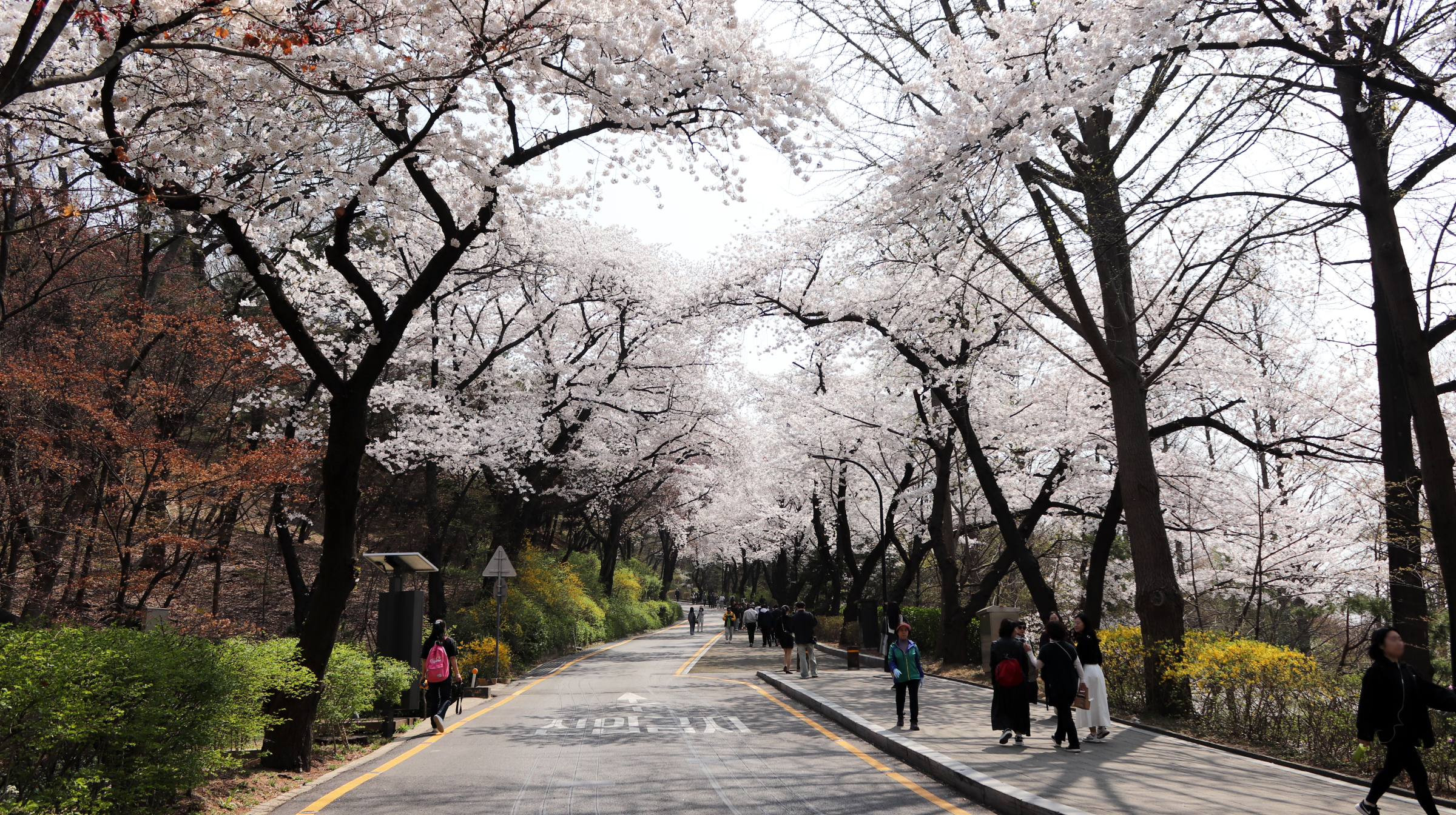 남산의 벚꽃은 정확히 절정이었다.
