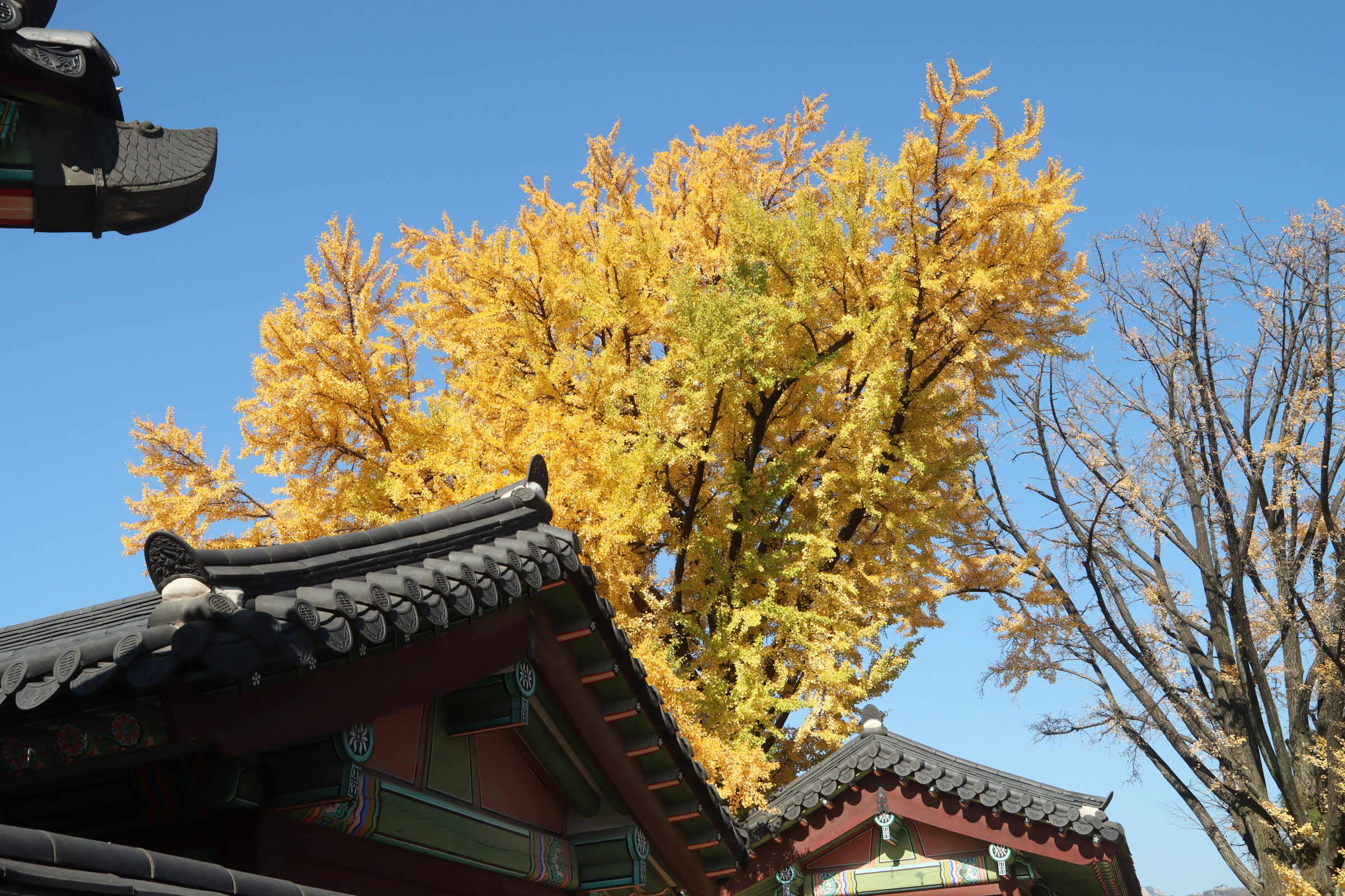 경복궁 건춘문 앞의 은행나무고, (10월말이면 이미 노란색)