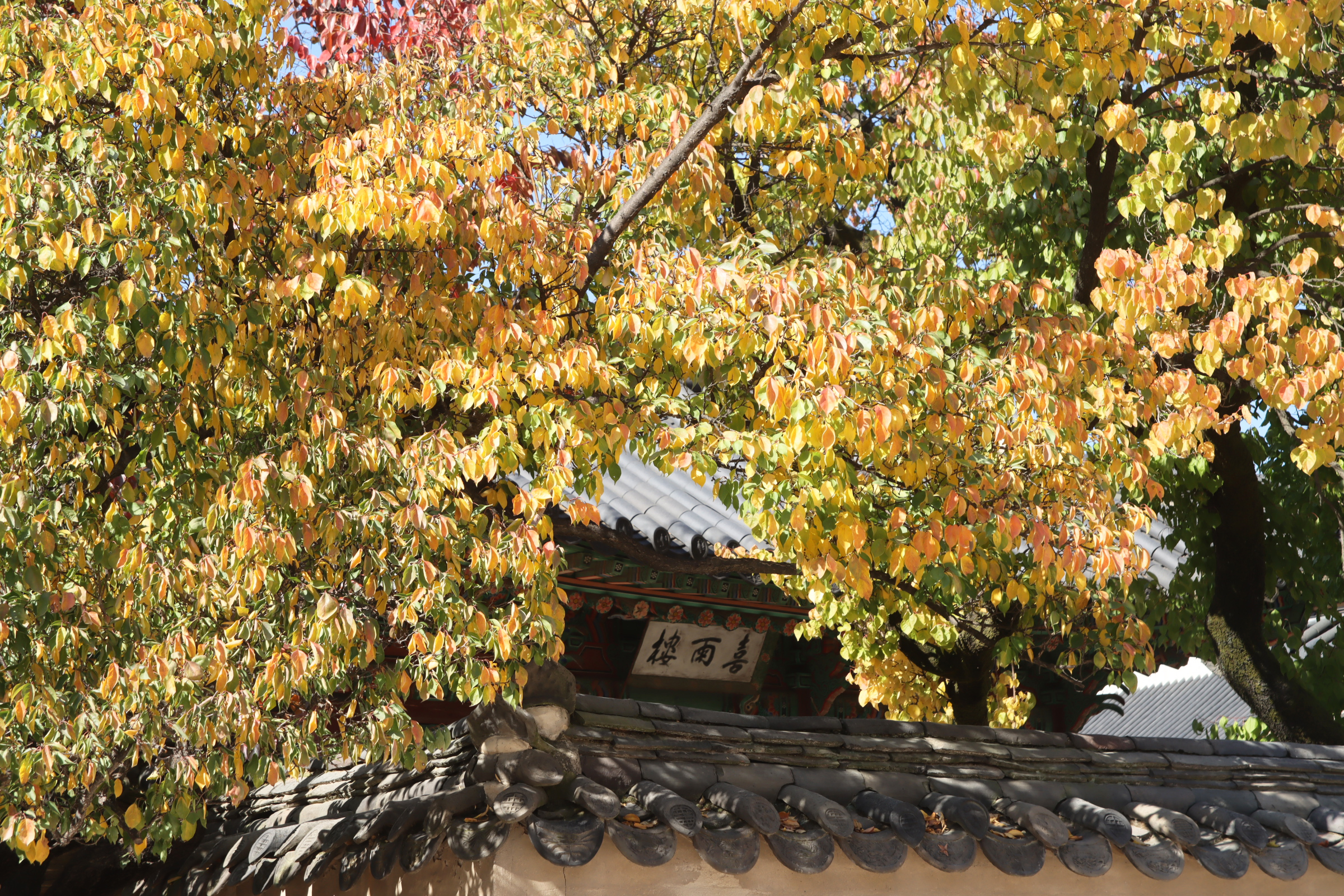 그다음은 성정각의 홍매화와 살구나무 단풍이다.