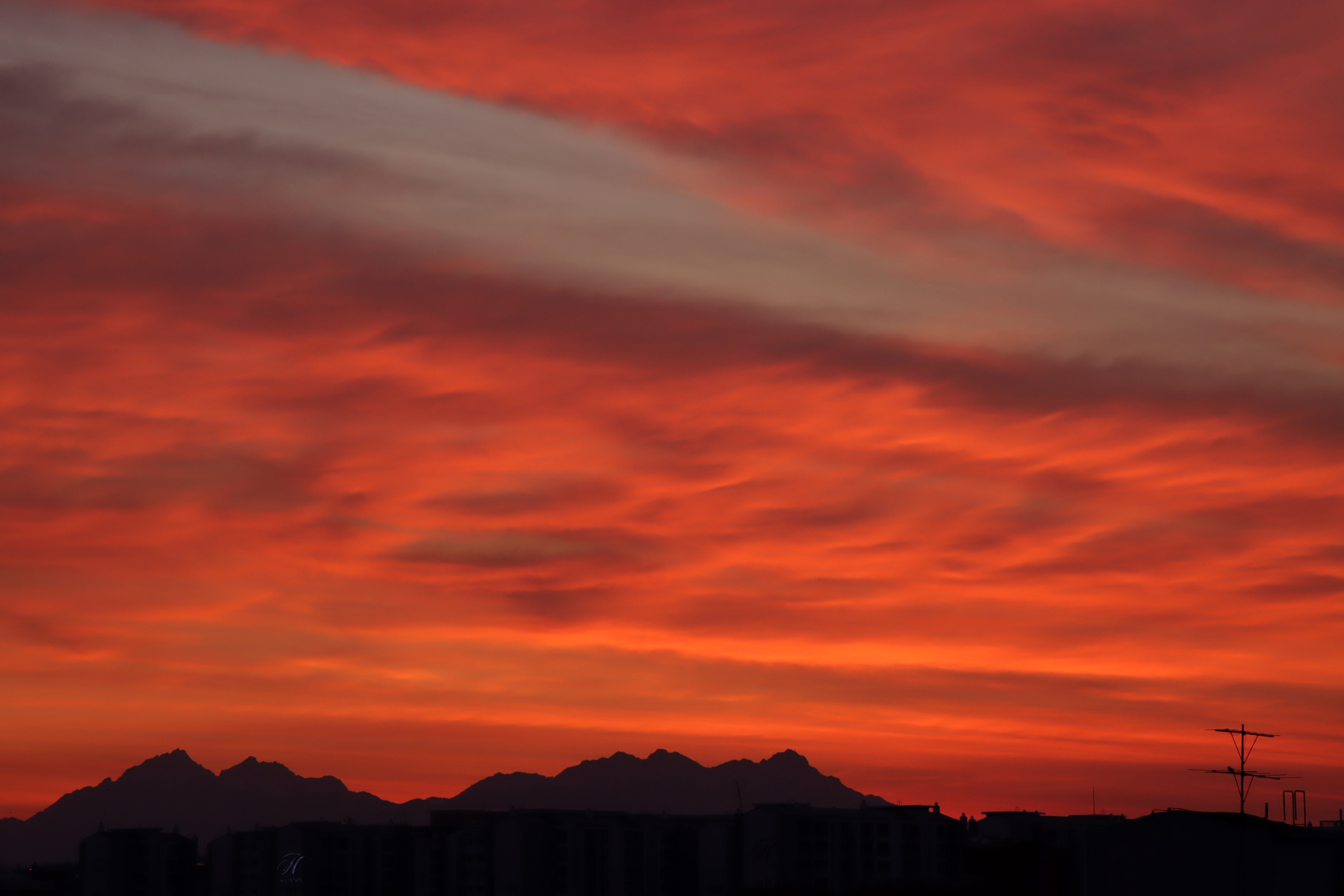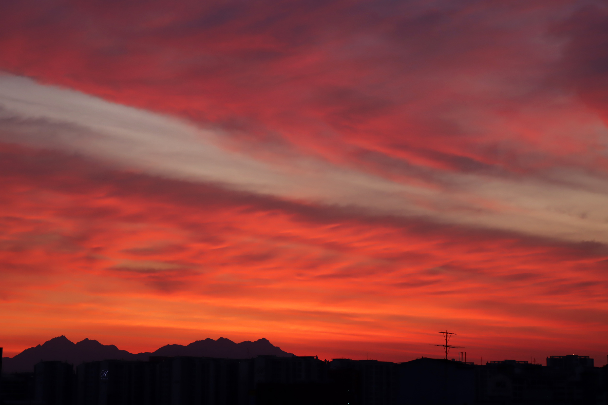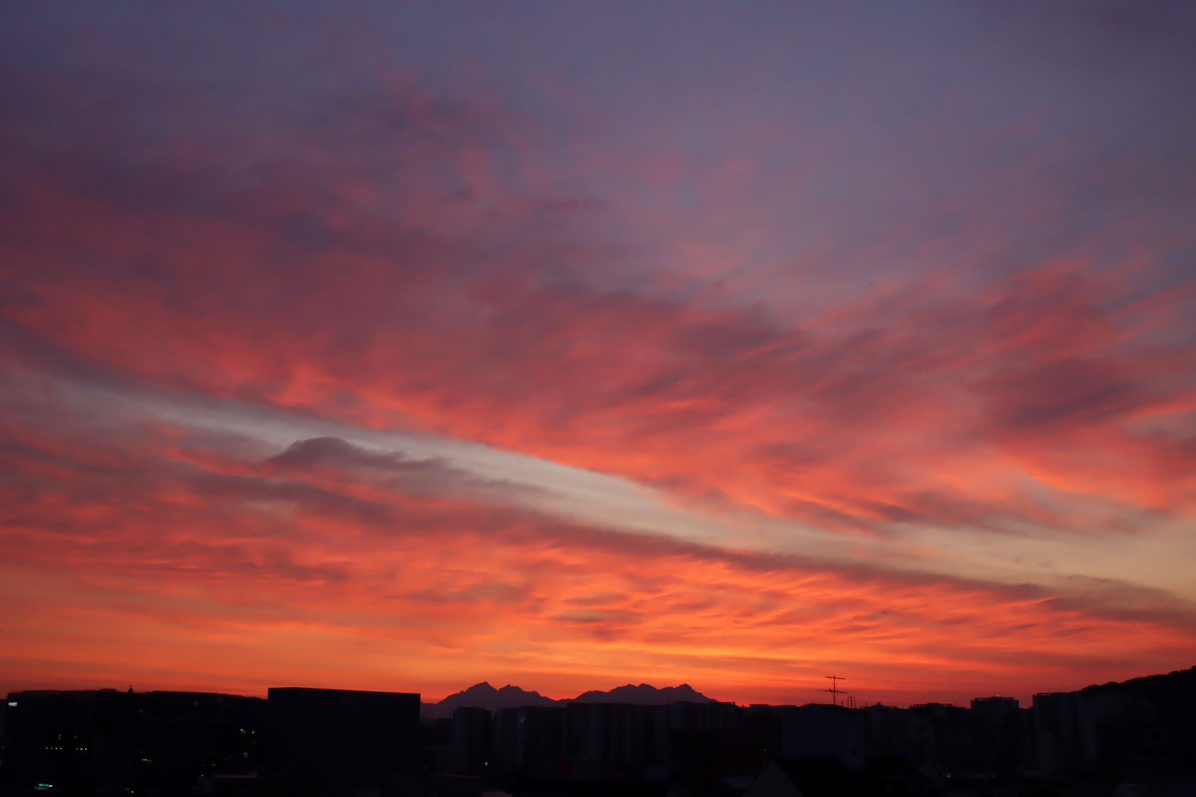 아침 4시 58분. 옥상. 하늘이 불타오른다.
