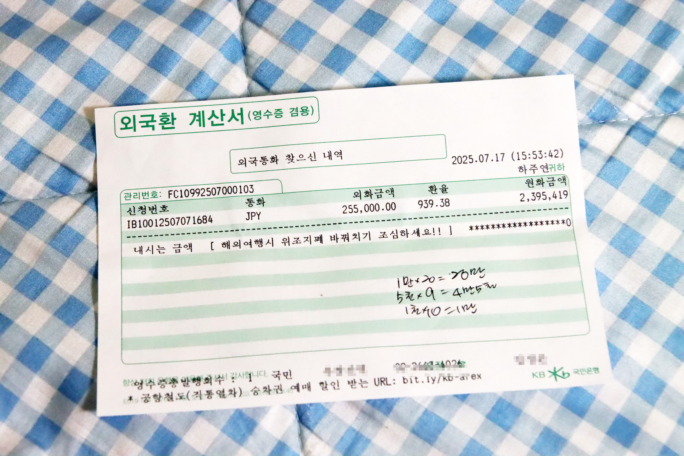 떠나기 이틀 전 즈음 환전을 하고...