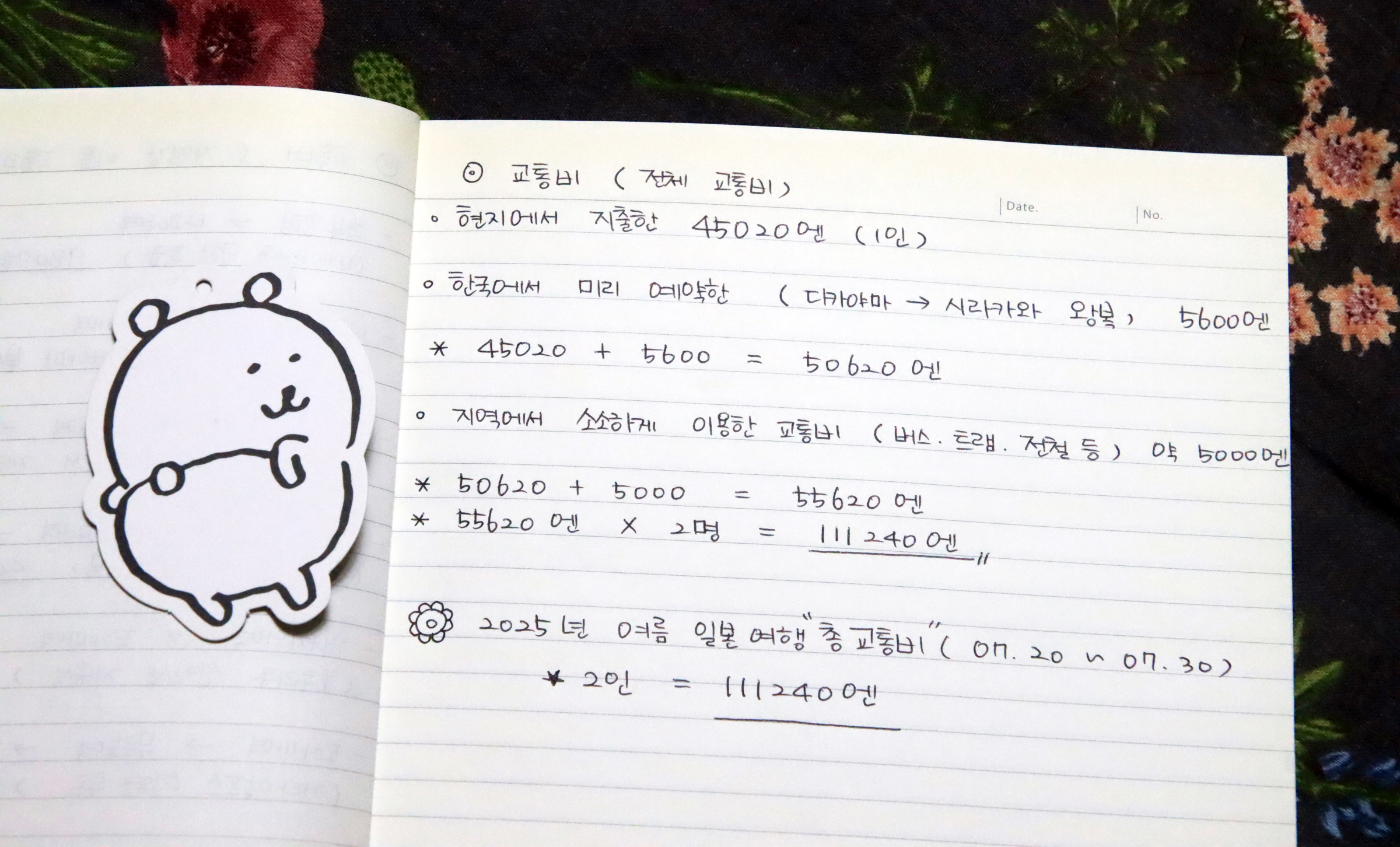 10박 11일 동안 2인 교통비가 111240엔.