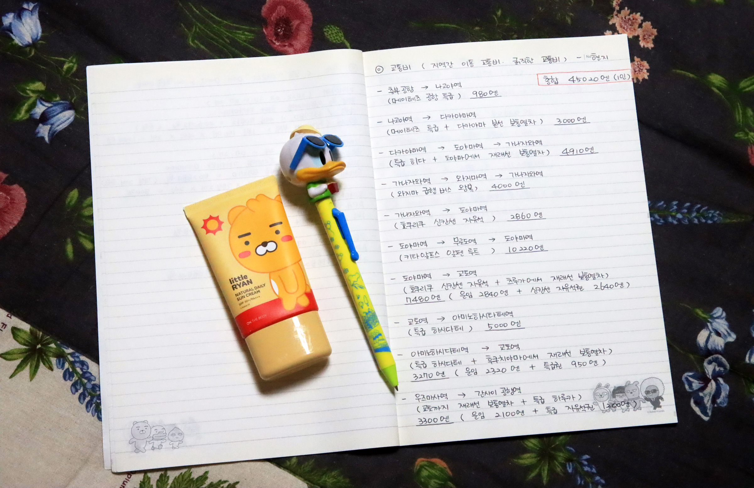 여행을 마치고 집에서 돌아와서 정리해 본 10박 11일 동안의 교통비.