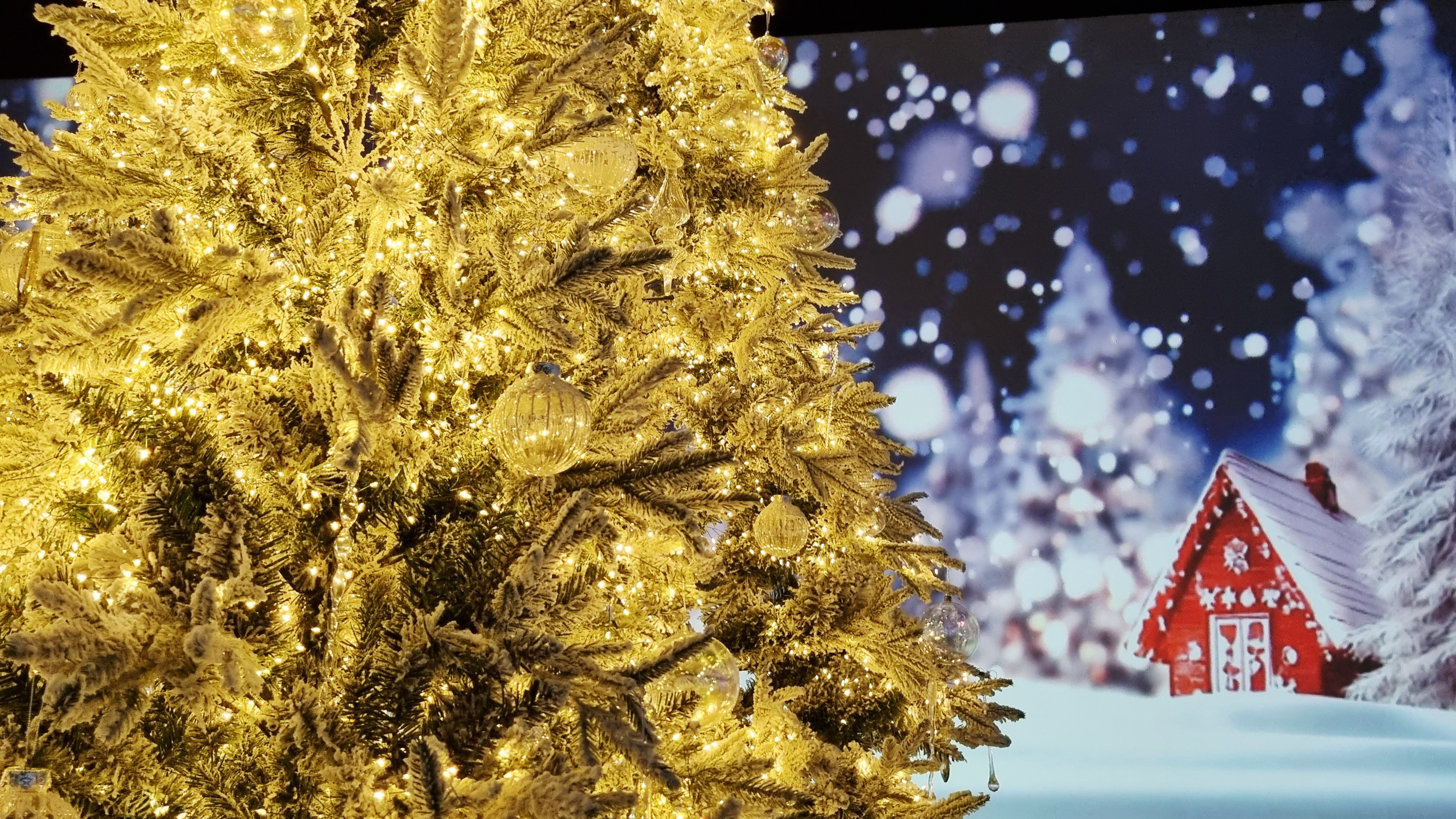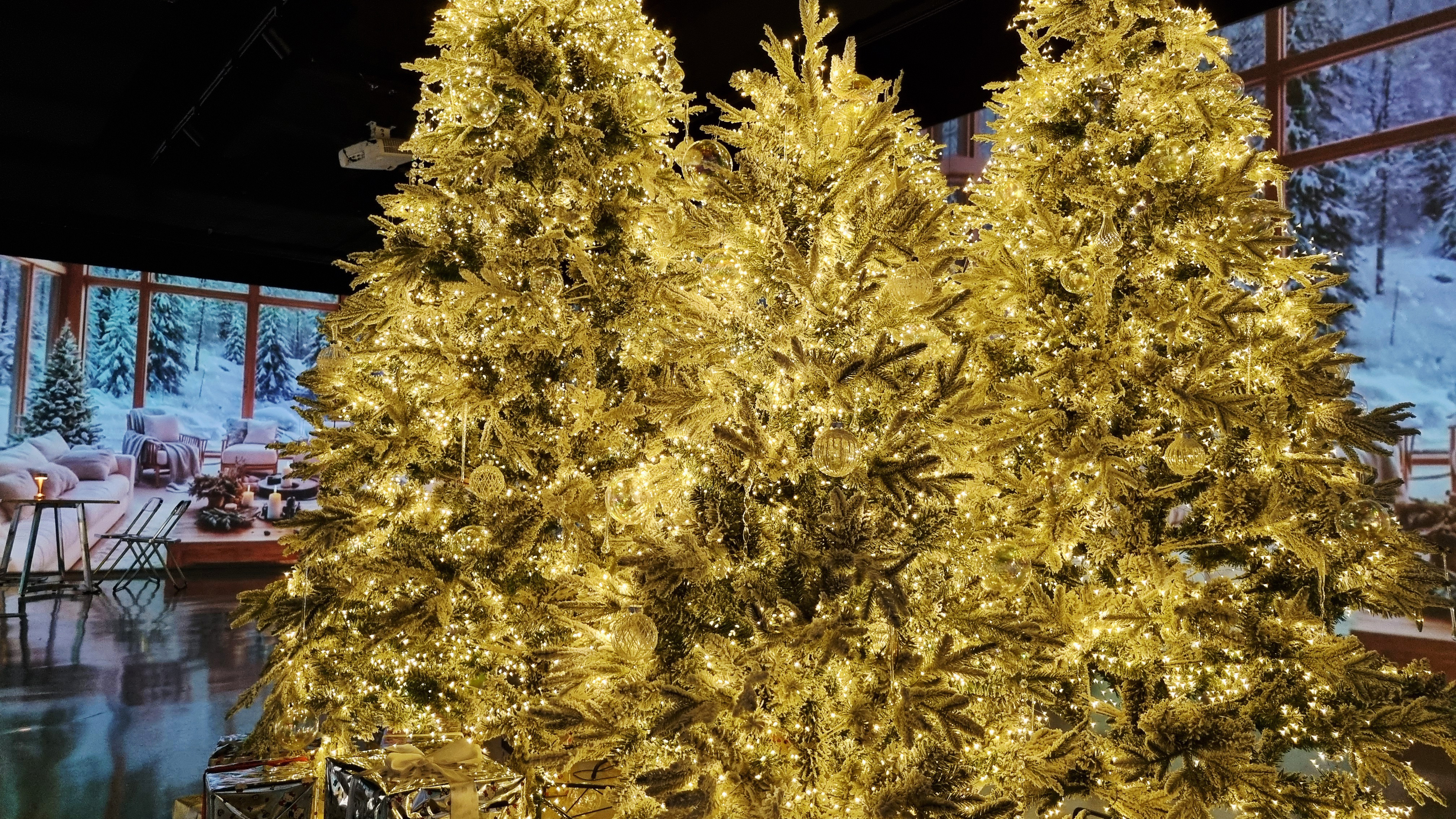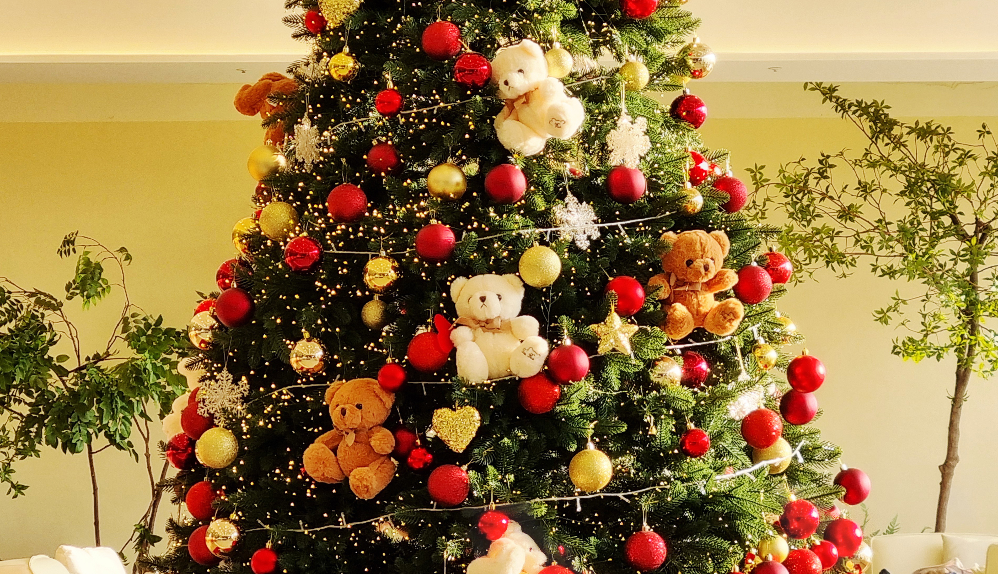 크리스마스 시즌이라 카페 곳곳에 대형 크리스마스트리가 장식되어 있어