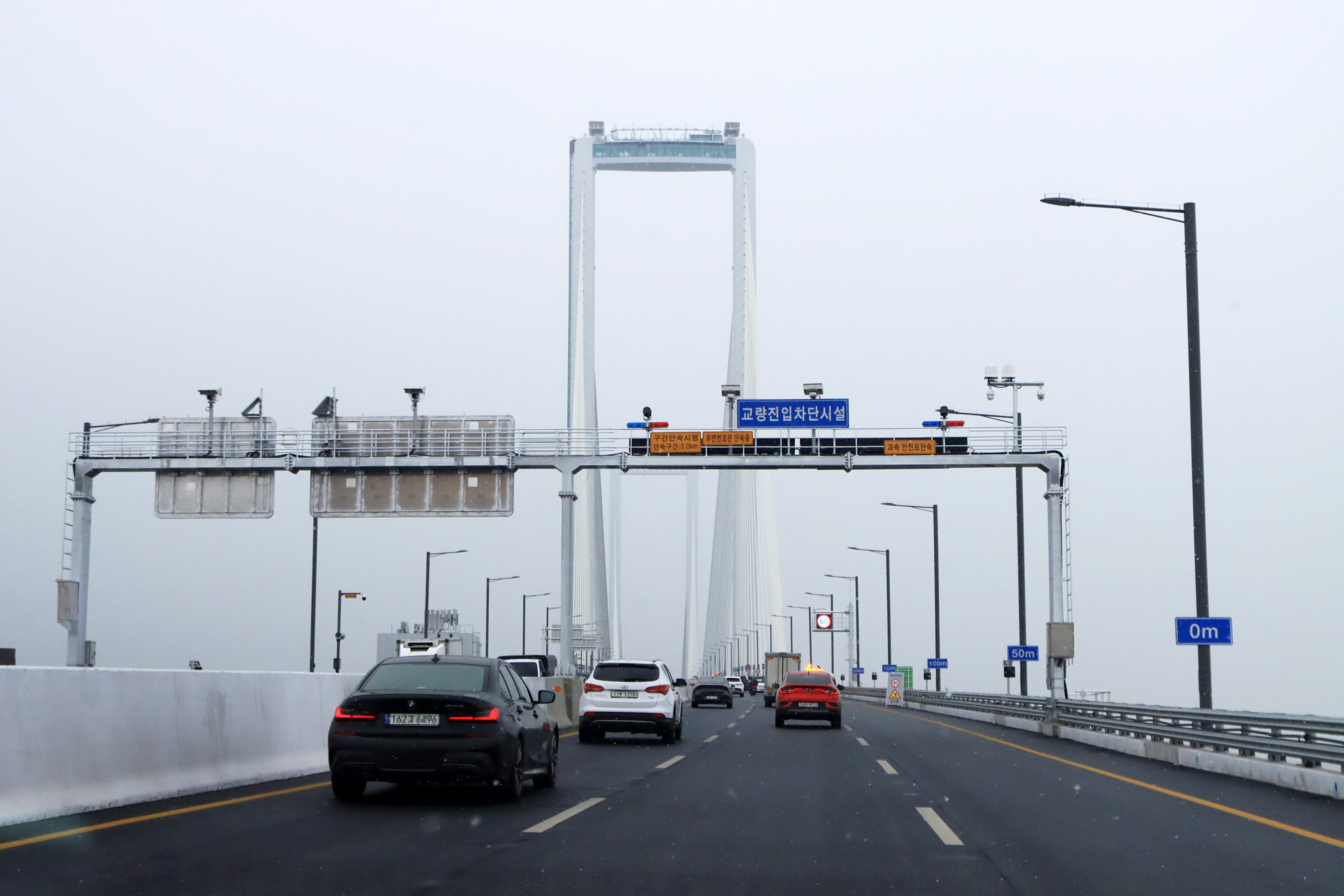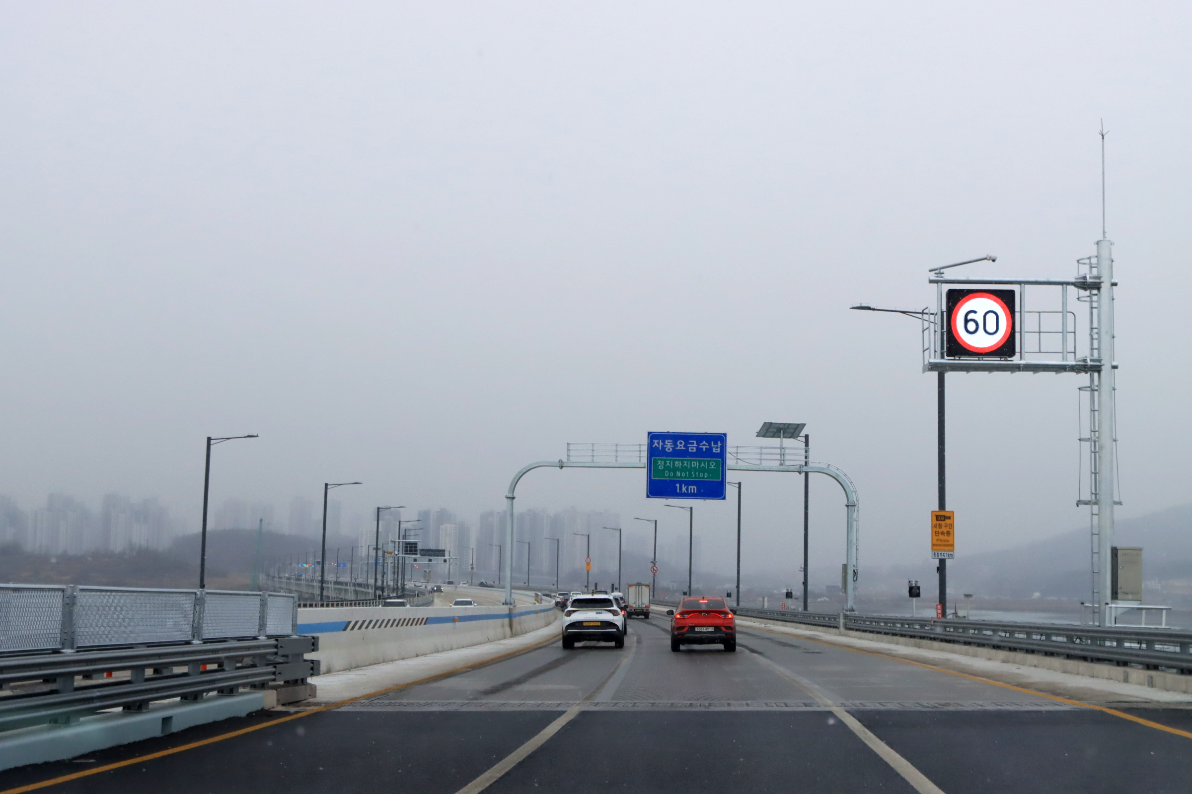 이 교량은 차량의 번호판을 자동으로 인식해 동행료를 결재하는 첨단 "스마트톨링 시스템을 도입하여