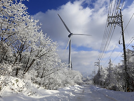전선에 있던 얼음과 풍력 발전기 날개에 붙어 있던 얼음 등이~