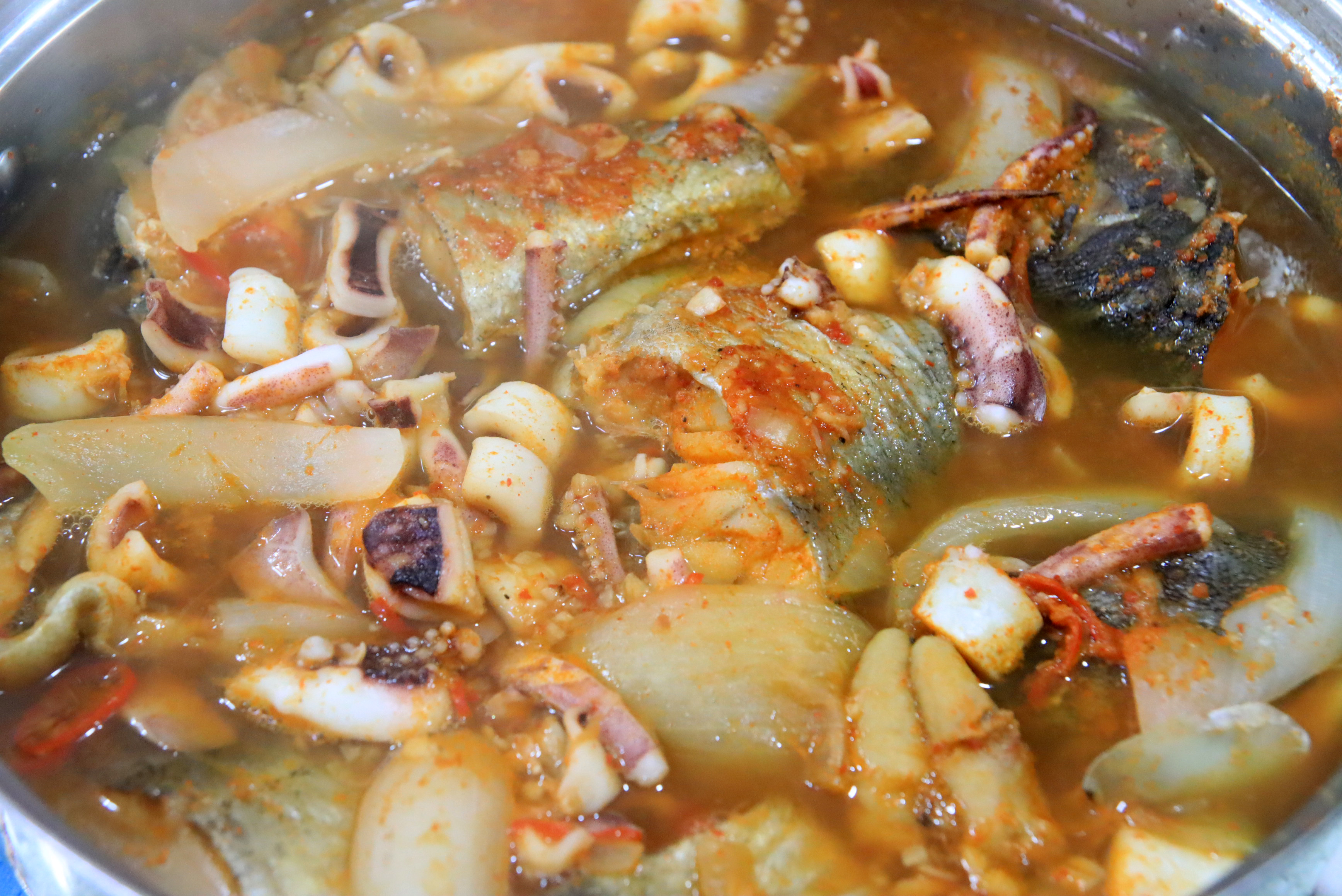 뜨끈뜨끈 시원한 오징어 듬뿍 넣은 동태탕에 밥 두 그릇!!!