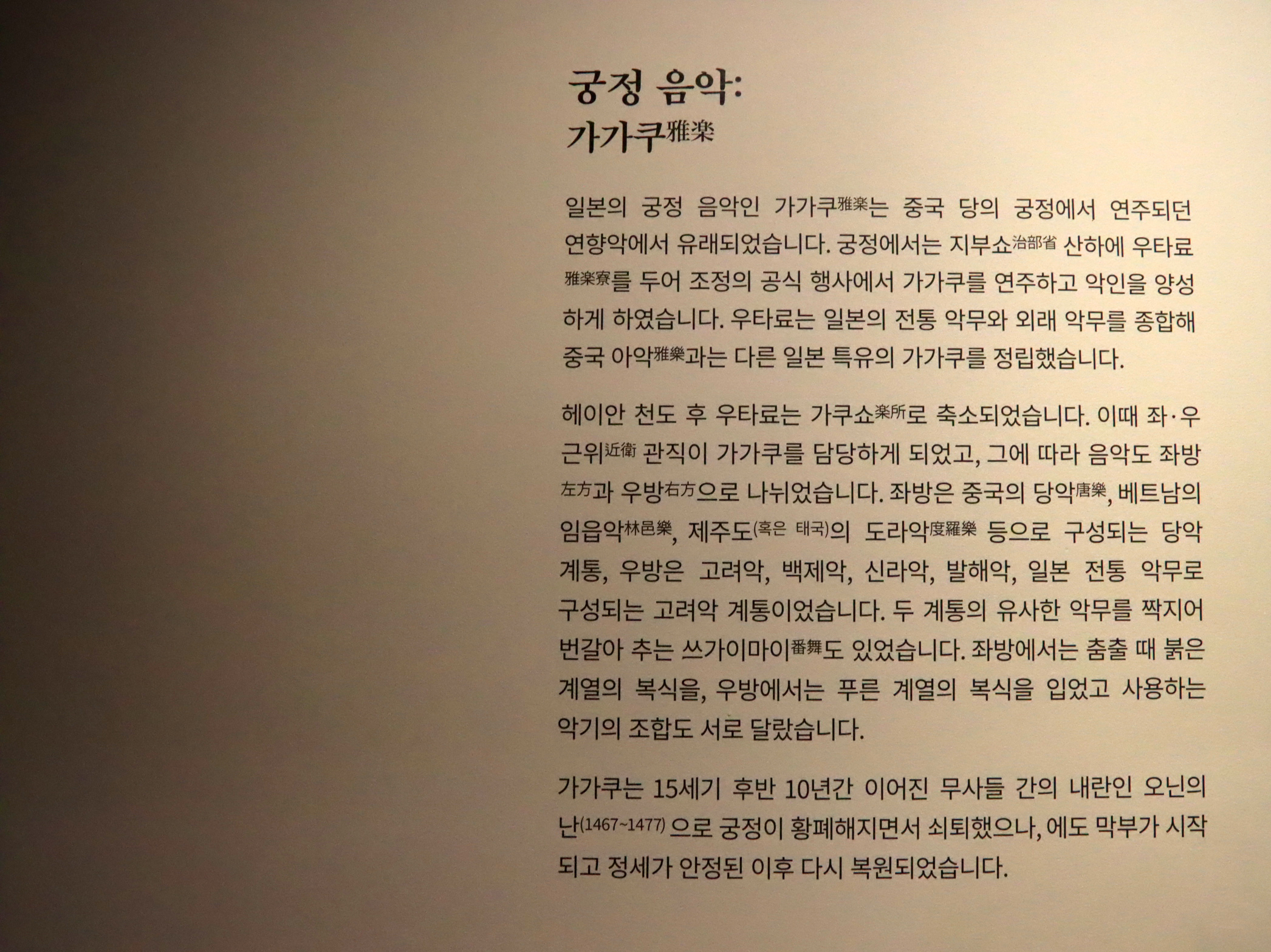 그 공간에 가면 가가쿠가 계속 흘러나오는데,